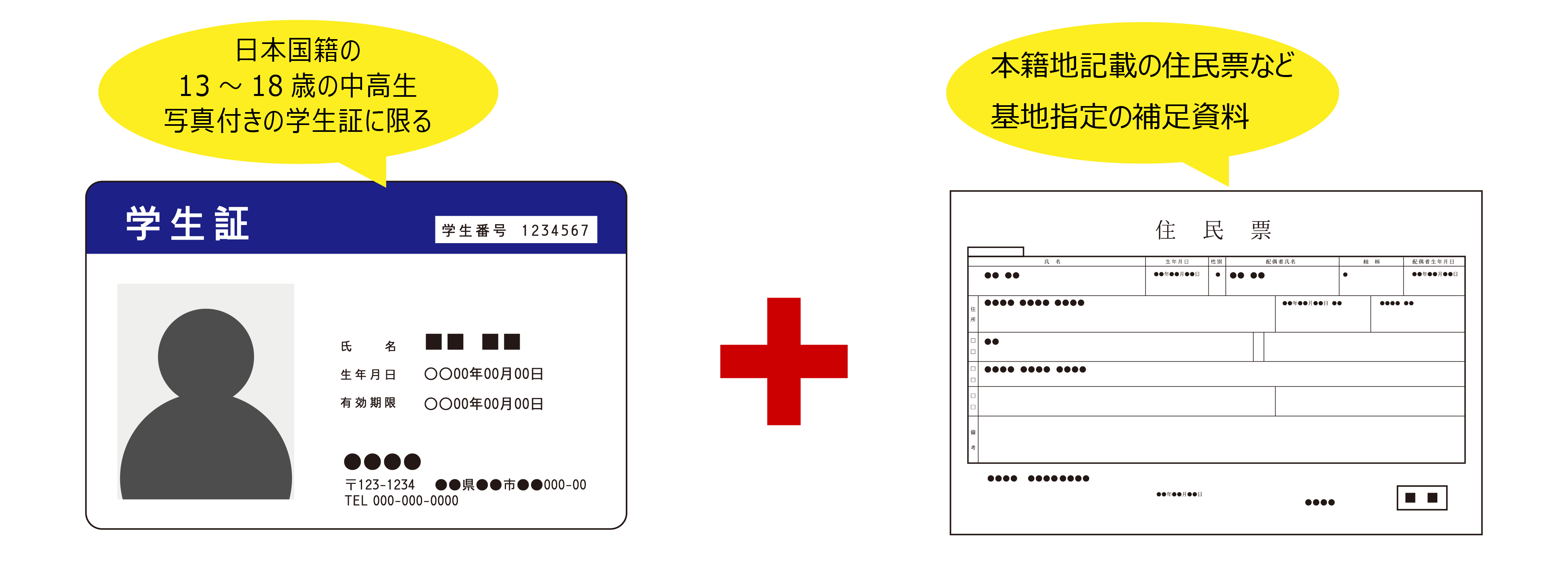 ※a~c添付書類は、提示される学生証・生徒手帳の交付日以降に取得したものに限る。