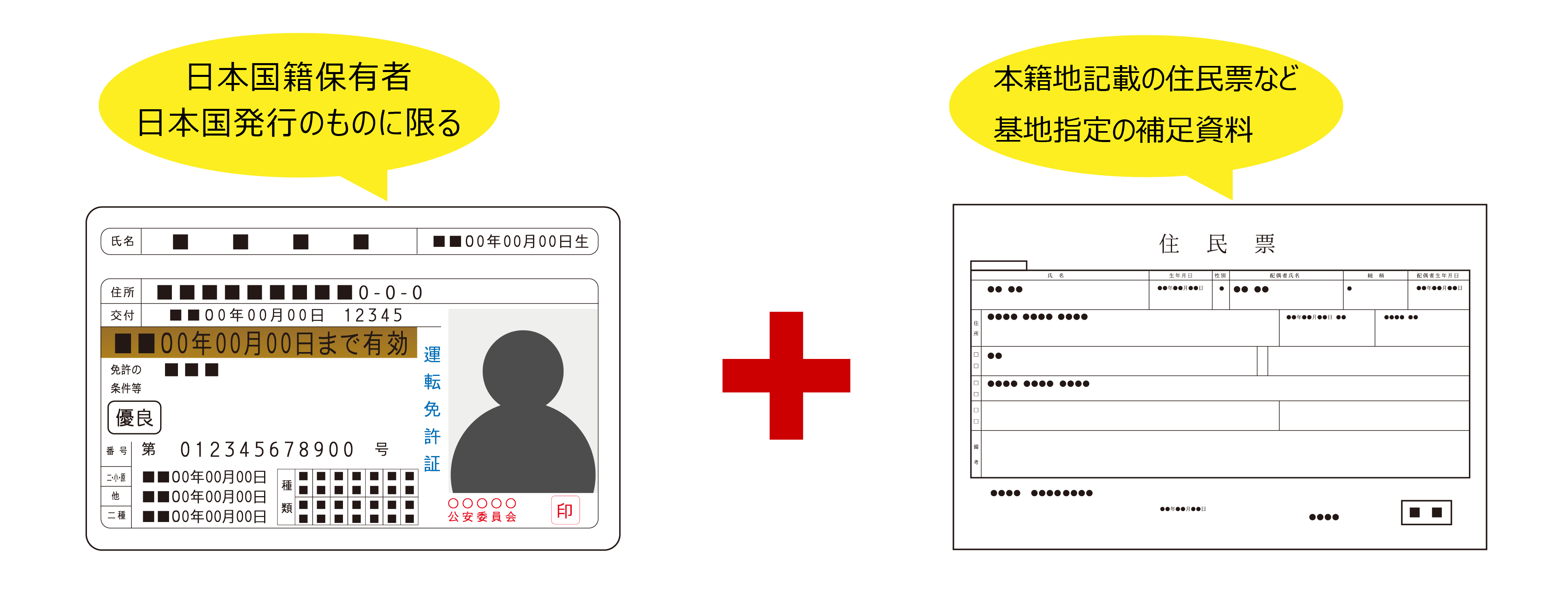 ※a~d添付書類は、提示される自動車運転免許証の交付日以降に取得したものに限る。